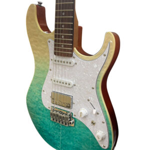 Tagima Stella DW TBLF 電吉他是一款在設計、木材和結構上都具有獨特考量的琴款。它擁有美麗的透明 琥珀色、珠光護板、雙樞軸顫音琴橋以及一組 HSS 拾音器(琴橋上為 Alnico 雙線圈拾音器,中部和琴橋上分別有兩個 Alnico單 線圈拾音器),使其成為巴西市場上最令人驚喜的樂器之一。